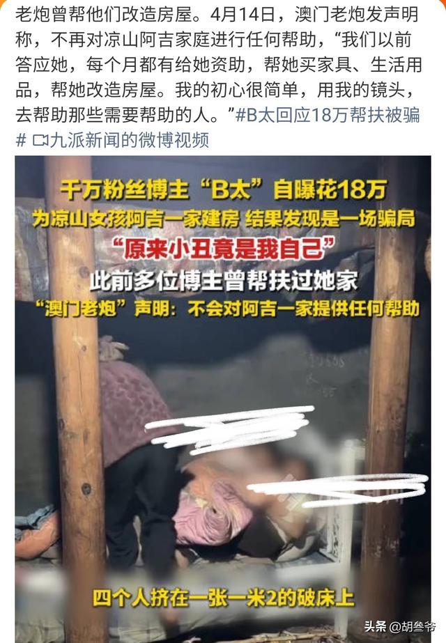 4月15日,打假博主B太帮扶四川凉山女孩阿吉建房被骗的音讯,在短视频平台全面刷屏。