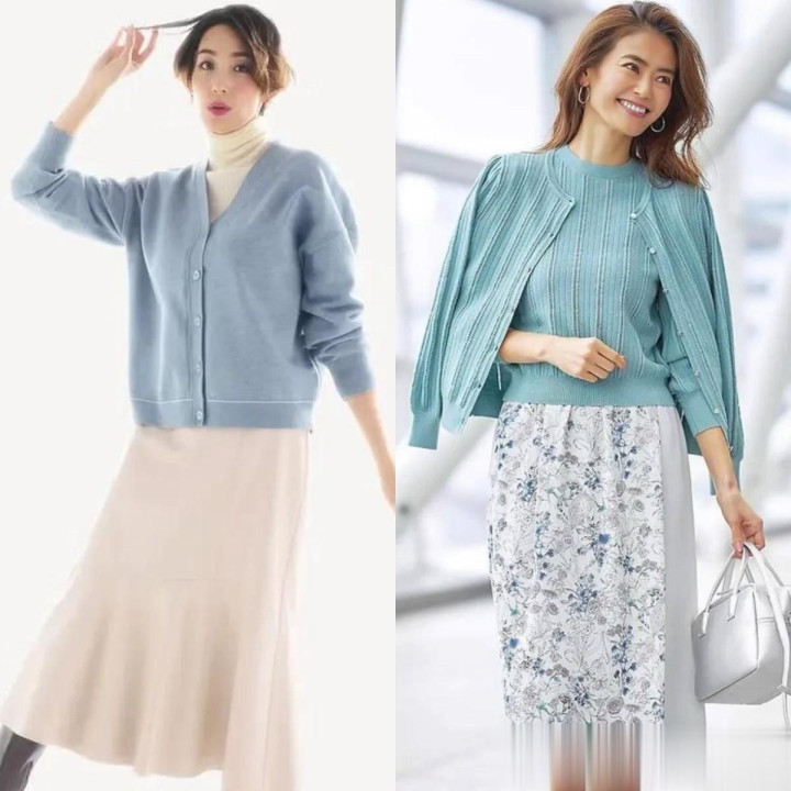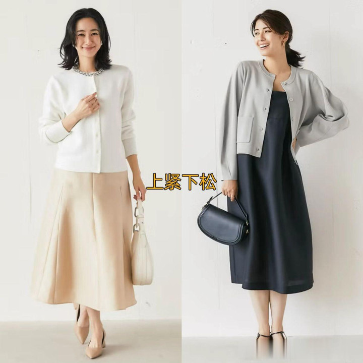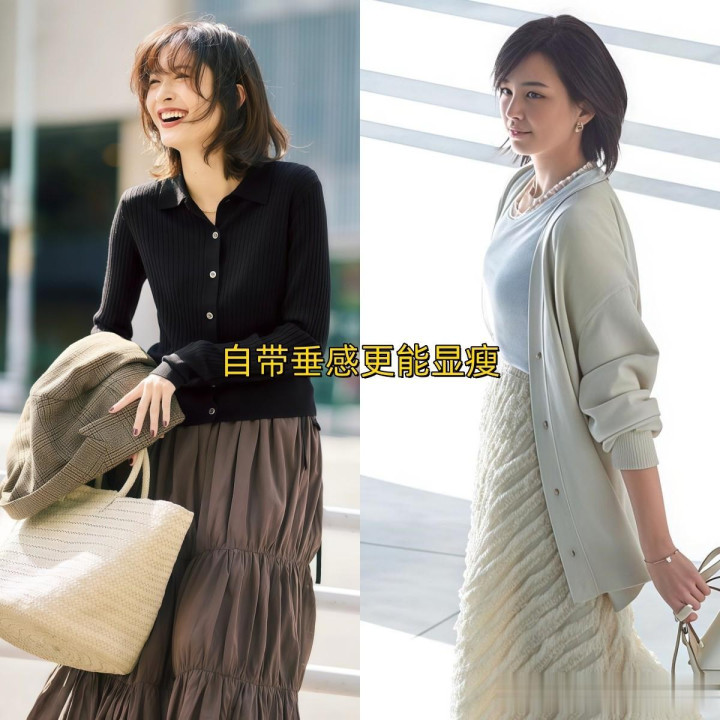 #开衫+膝下裙搭配手段#