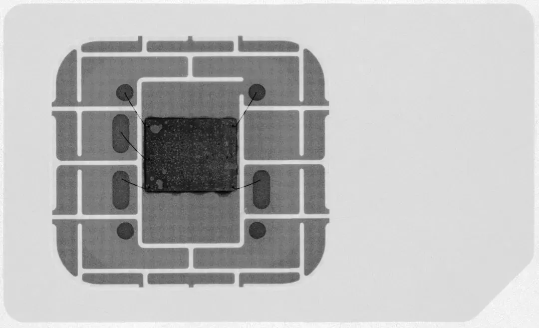 这是mini-SIM卡的X光图像,线路了芯片过甚流畅。|CC BY-SA 3.0, commons.wikimedia