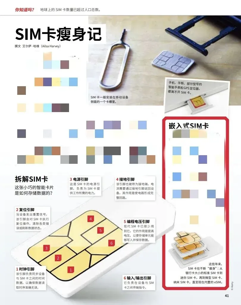 这是《万物》杂志2月刊《SIM卡瘦身记》著作中对于SIM卡的拆解。