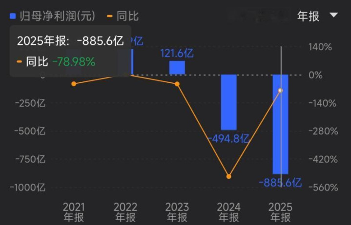全年营收2334亿元,与上一年比较下降了32%,更令东说念主讶异的是利润情况,客岁全年的包摄于母公司净利润是亏蚀886亿元。