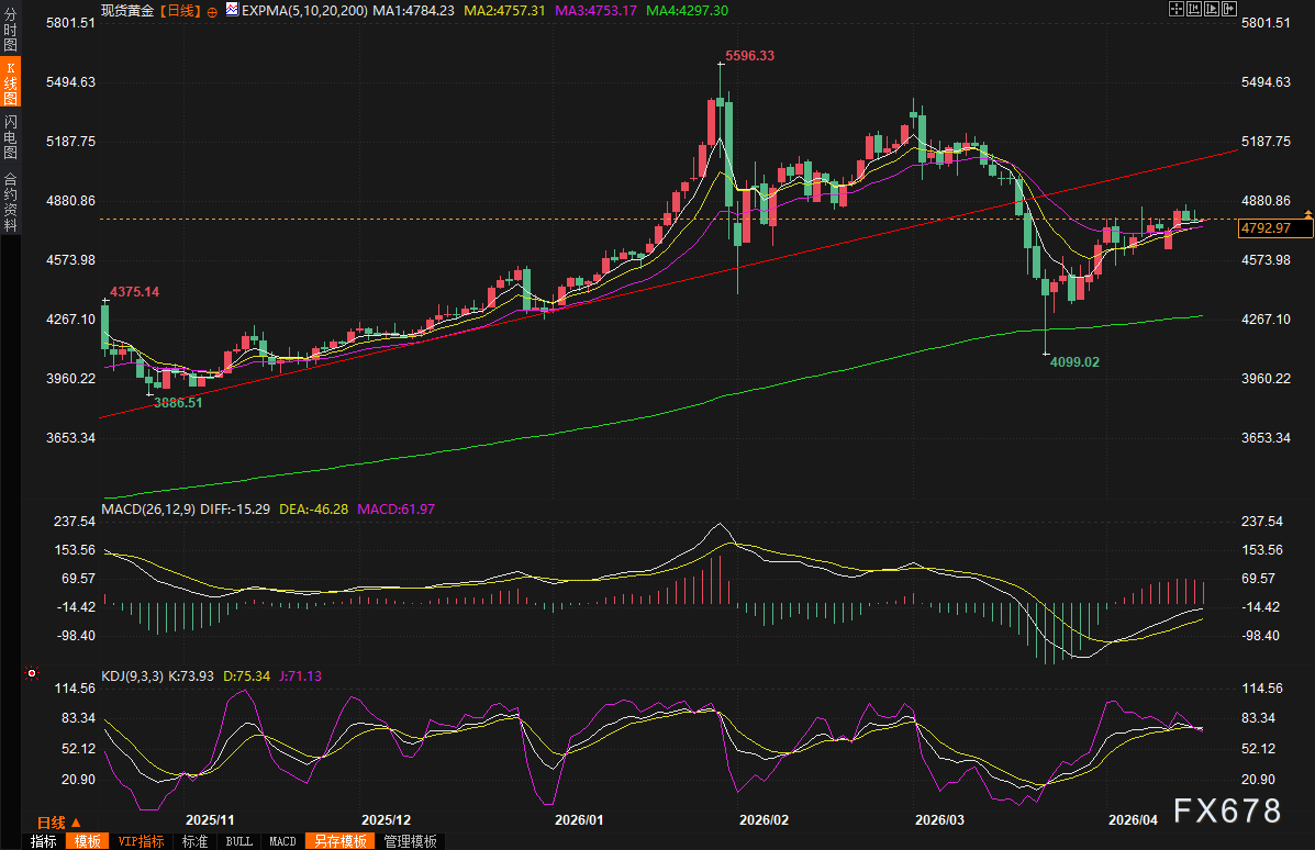 (现货黄金日线图,起首:易汇通)北京时候07:19,现货黄金现报4795.81好意思元/盎司。