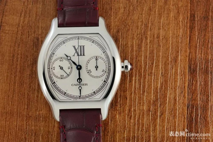 铂金表壳搭配温润的银色卵白石表盘,与经心谋略的圆珠形时标和蓝钢指针酿成文静对比,工整的计时小表盘布局既保证了易读性,又增添了支撑魔力。铂金搭配表冠凸圆形红对峙和勃艮第色皮表带点缀,使Tortue单按钮计时码表即使在Cartier Privé系列中的辨识度亦然独树一帜。